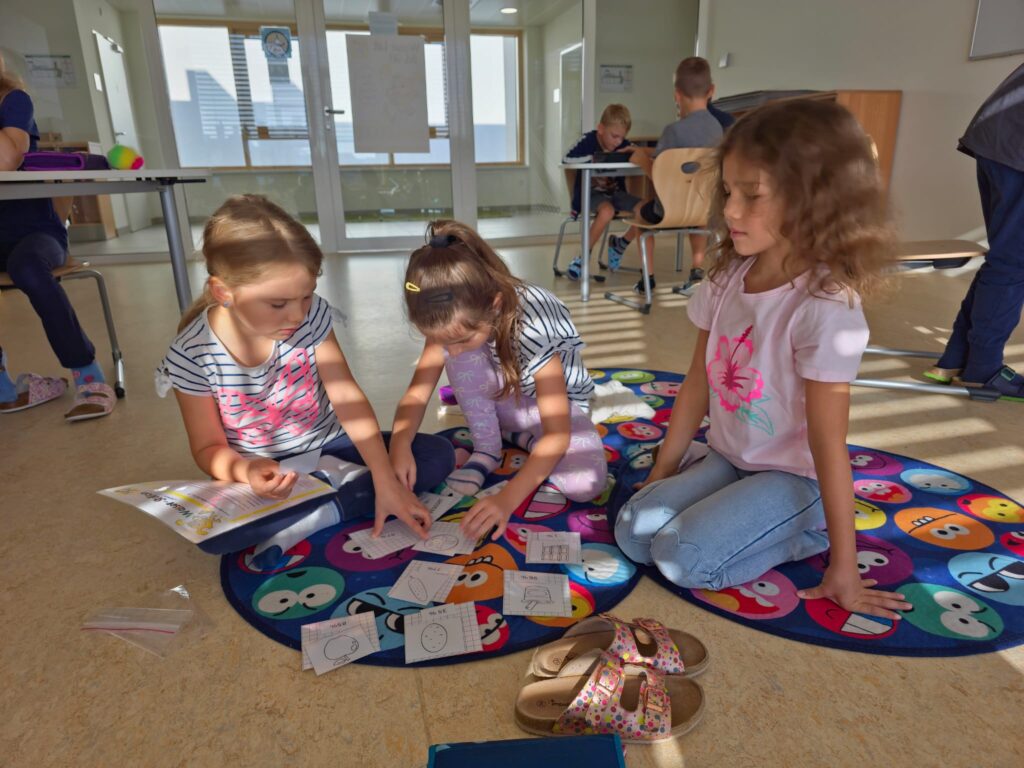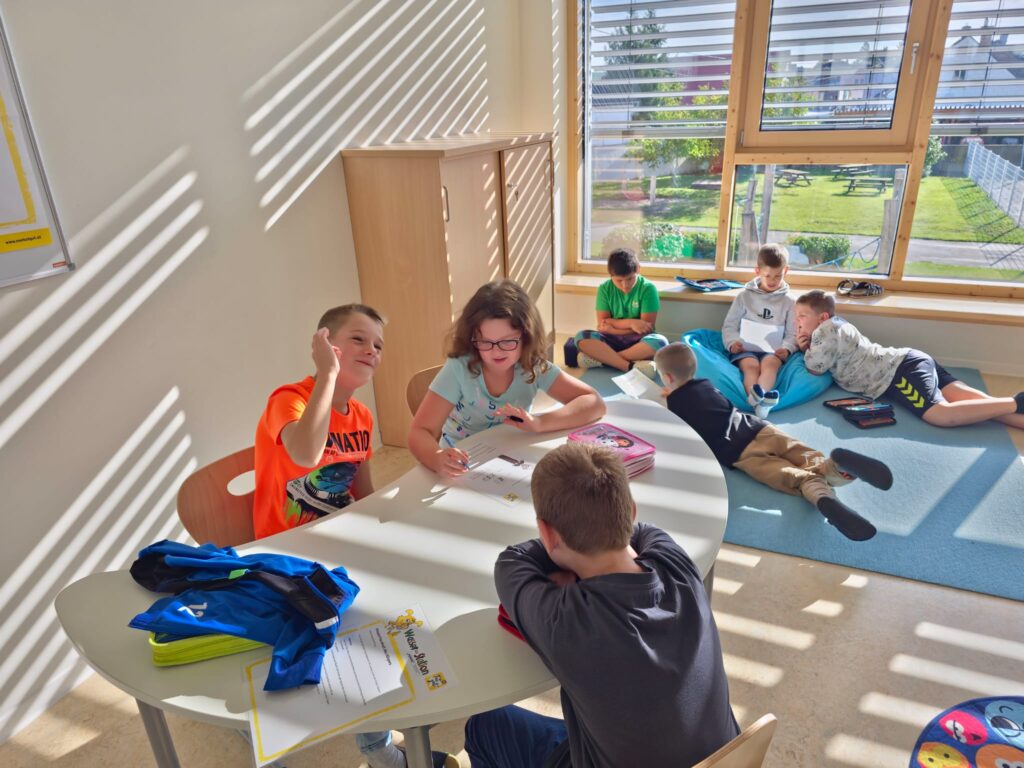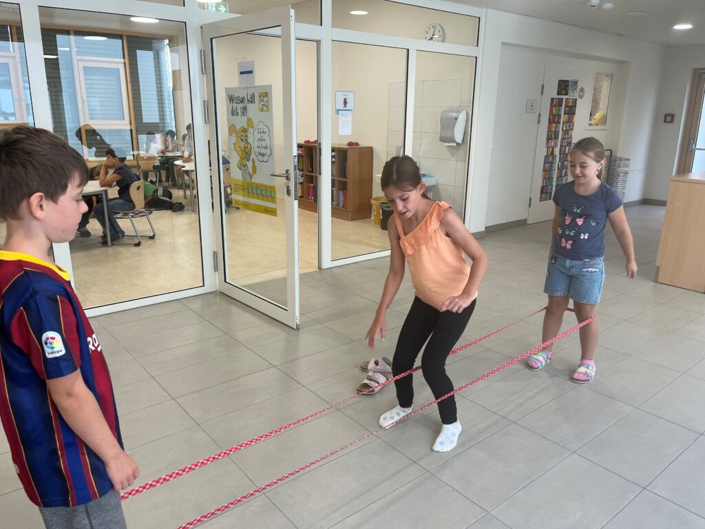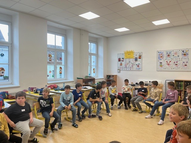 Wir überlegten wie wir unsere Klassengemeinschaft stärken können, damit wir uns alle wohlfühlen. Wir kamen zu dem Entschluss, dass es für ein gutes Miteinander Regeln und Respekt braucht. Übungen dazu wurden mittels kleinen Spielen und Liedern umgesetzt.