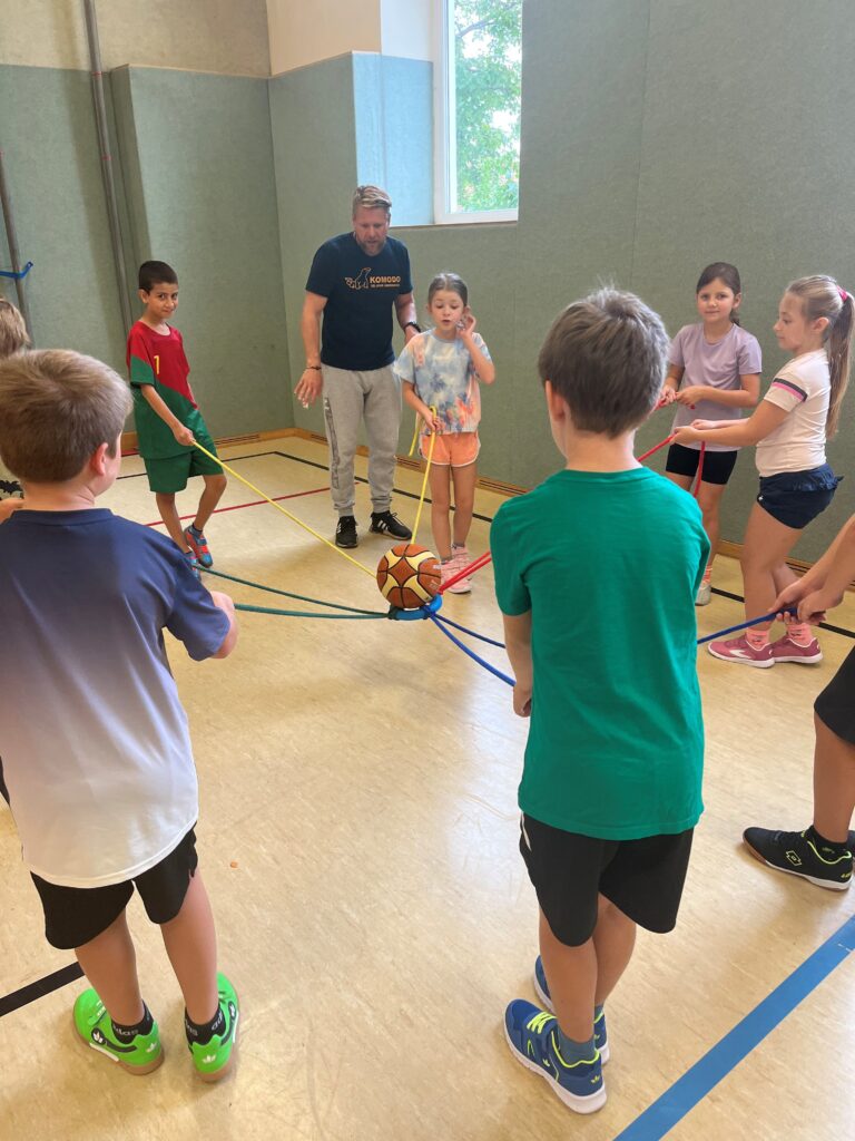 Beim ersten Besuch unseres Bewegungstrainers in diesem Schuljahr standen alle Spiele unter dem Schlagwort „Team“.