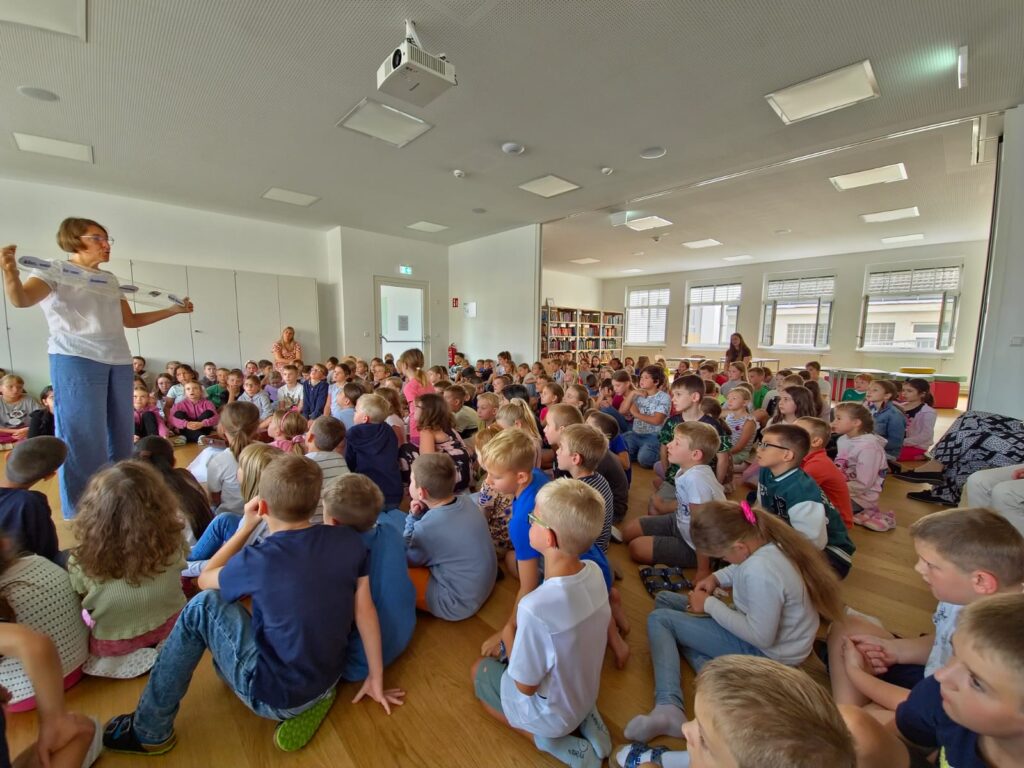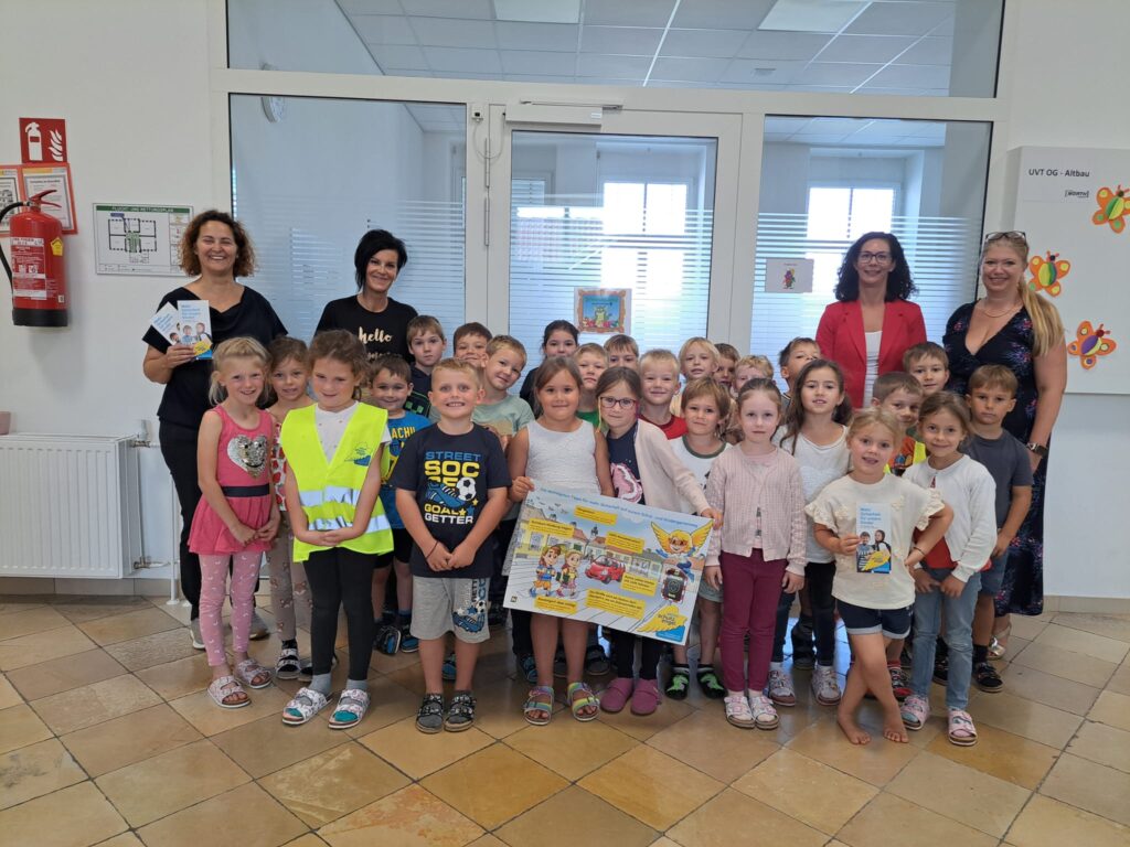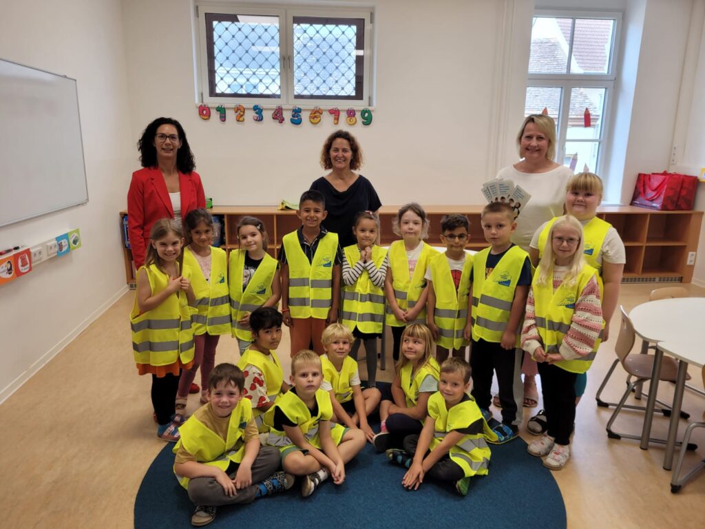Gleich zu Schulbeginn wurden unsere 1. Klassen und die Vorschulkinder von unserer Frau Bürgermeister besucht. In Rahmen der „Aktion Schutzengel“ wurden die Kinder auf die Wichtigkeit der Sichtbarkeit am Schulweg hingewiesen!