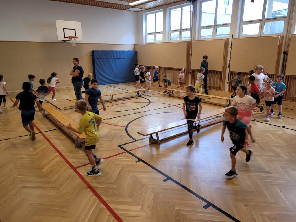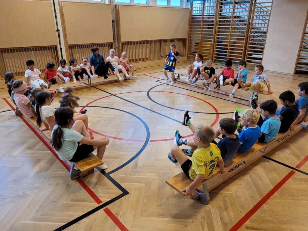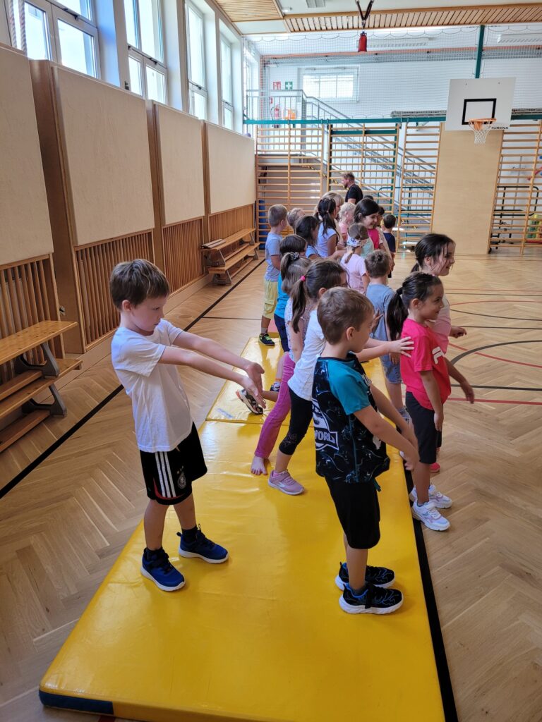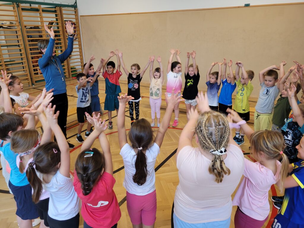 Die Kinder der 1A-Klasse folgten mit großer Begeisterung der Bewegungsaufforderung von Hopsi Hopper im Rahmen der ASKÖ-Initiative „Niederösterreich bewegt sich“.