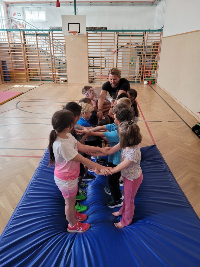 Beim ersten Besuch unseres Bewegungstrainers in diesem Schuljahr standen alle Spiele unter dem Schlagwort „Team“.