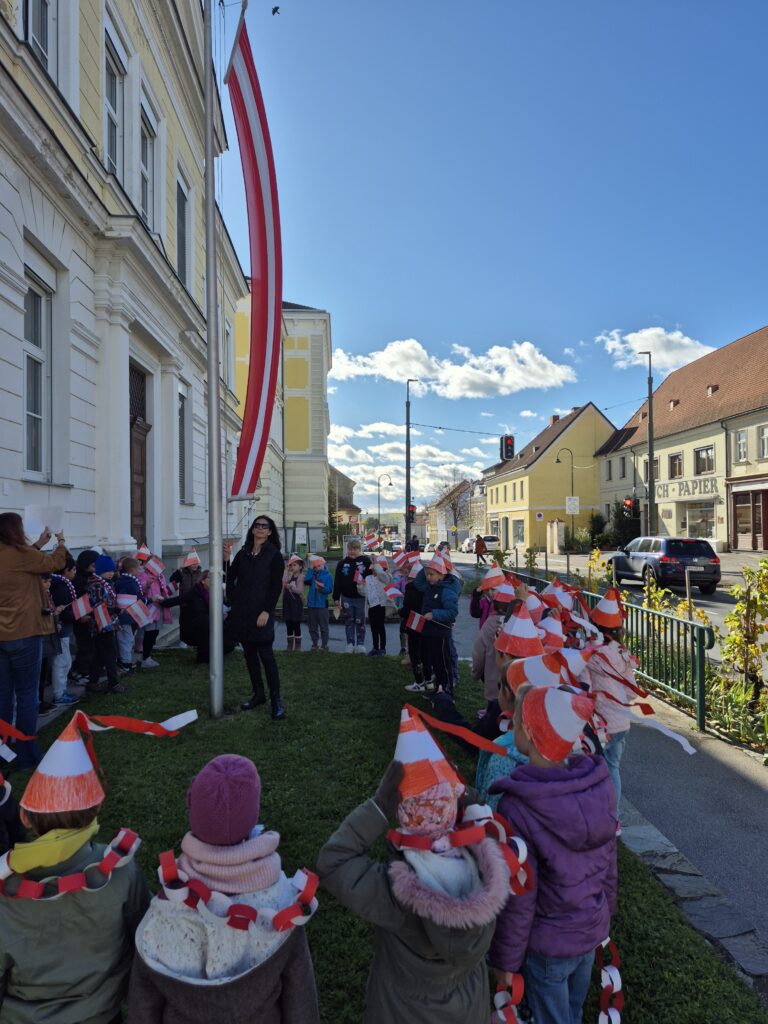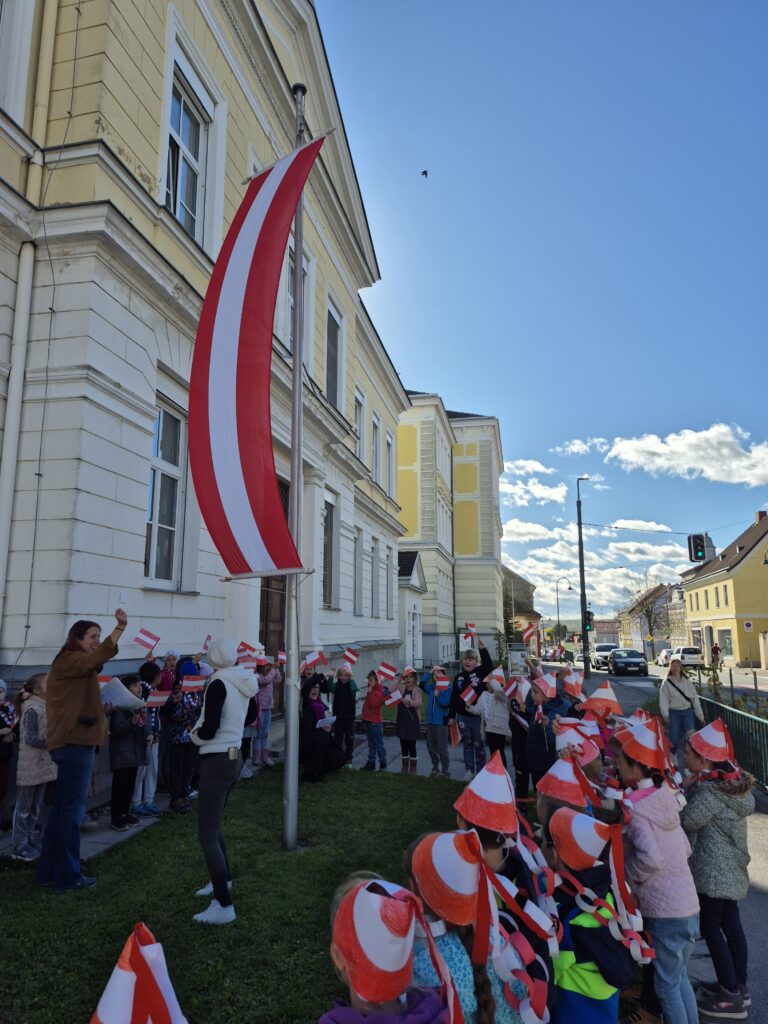 Heute feierten die Kinder der Volksschule noch vor den Herbstferien den bevorstehenden Nationalfeiertag. In den Klassen wurden Lieder und Sprüche über Österreich vorbereitet und anschließend gemeinsam vorgetragen.