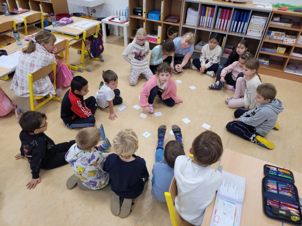 Zu tschechischen Liedern wird getanzt, gemeinsam gesungen und mit viel Freude mitgemacht. Beim Basteln, bei Spielen tauchen die Kinder ganz natürlich in die Sprache ein. Ab und zu kommen auch unsere Bee-Bots oder das Smartboard zum Einsatz und sorgen für zusätzliche Motivation.