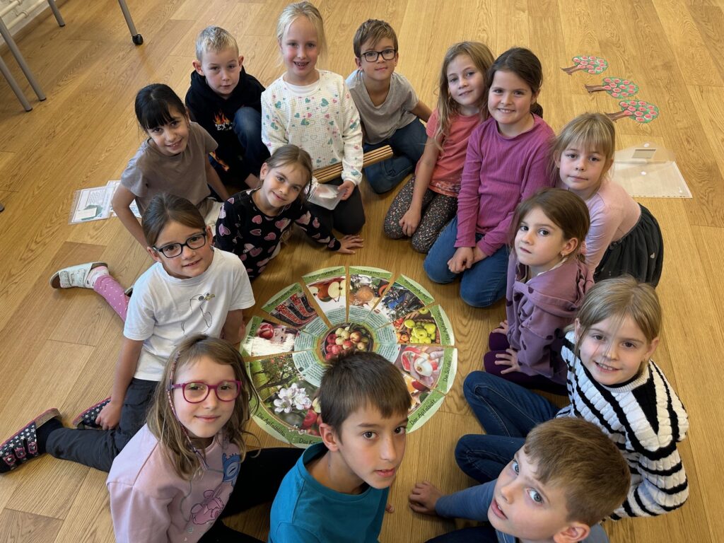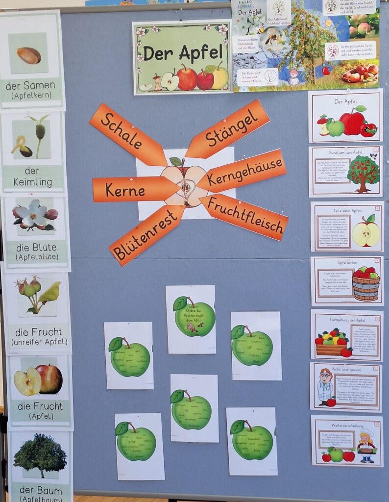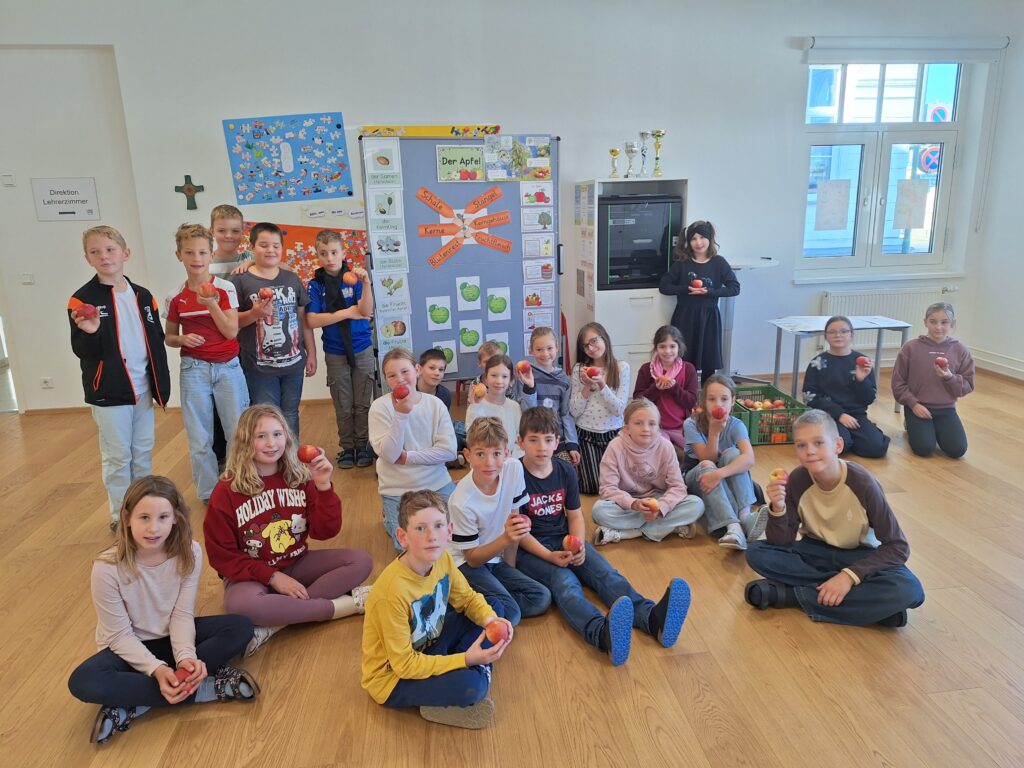 Jedes Schulkind erhielt einen Apfel von der Obstbaumschule Schreiber und konnte sich außerdem auf vielfältige Art mit dem Thema „Apfel“ auseinandersetzen