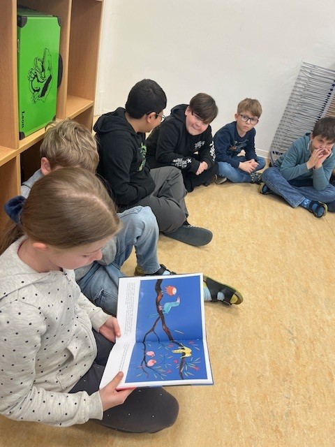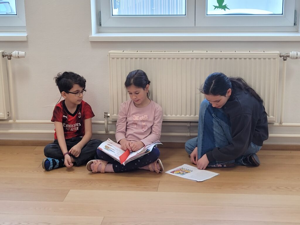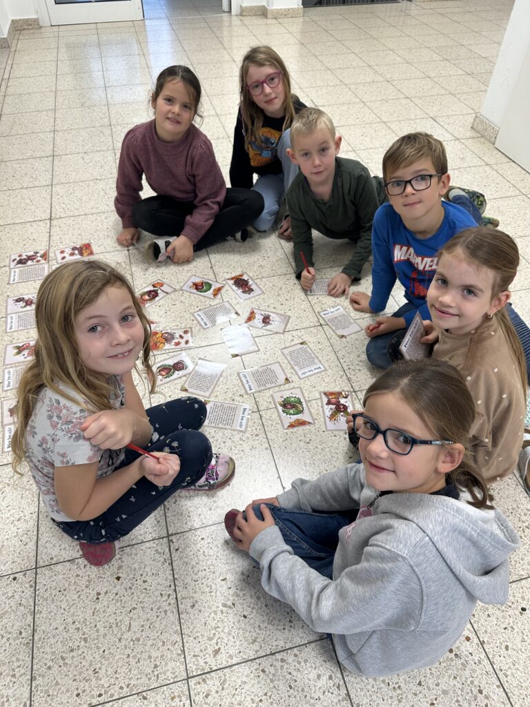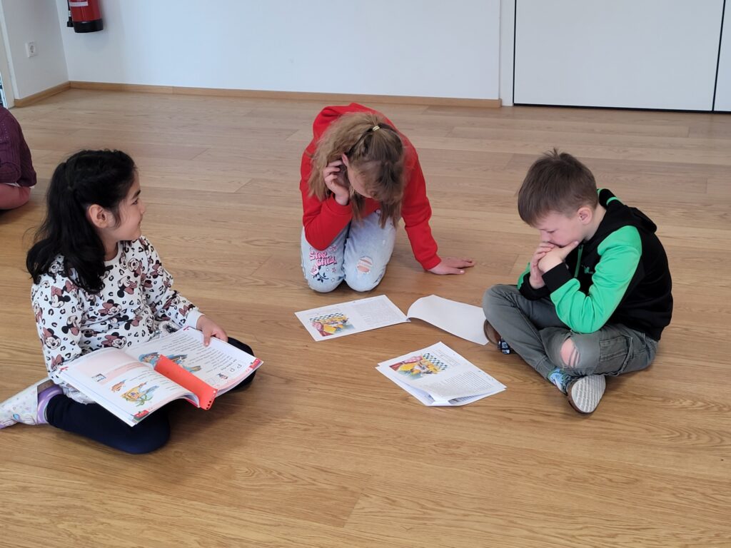 Nachdem den Kindern die Geschichte vom „Löwen, der nicht schreiben konnte“ vorgelesen wurde, spielten alle zusammen das Lesememory “ Memorix“.