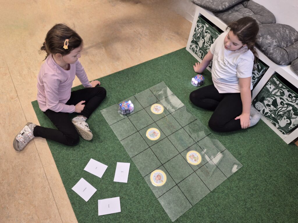 Wir stellten uns dabei so geschickt an, dass manche sogar bei einem „Bee-Bot-Wettrennen“ auf dem Autoparcour gegeneinander antreten konnten.