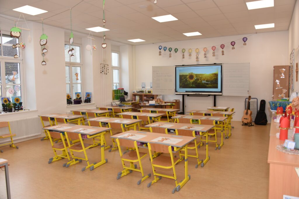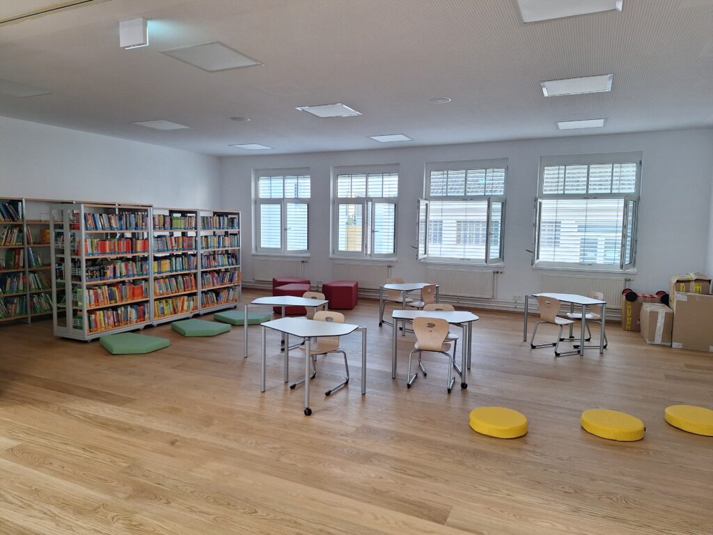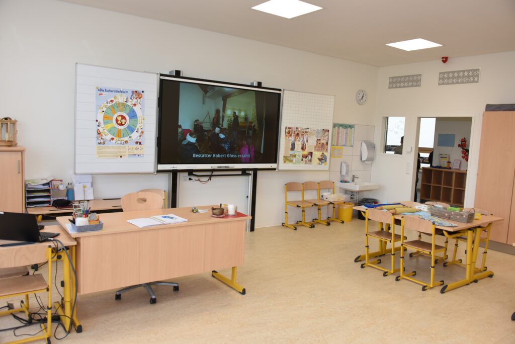 Alle sanierten Klassenräume wurden darüberhinaus mit zeitgemäßen Smartboards und SchülerInnenmöbel ausgestattet.