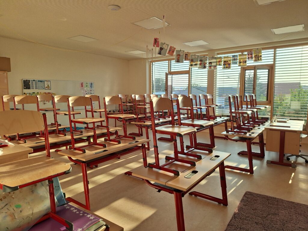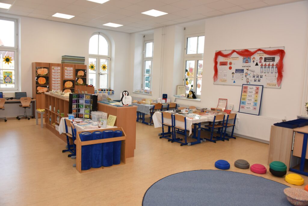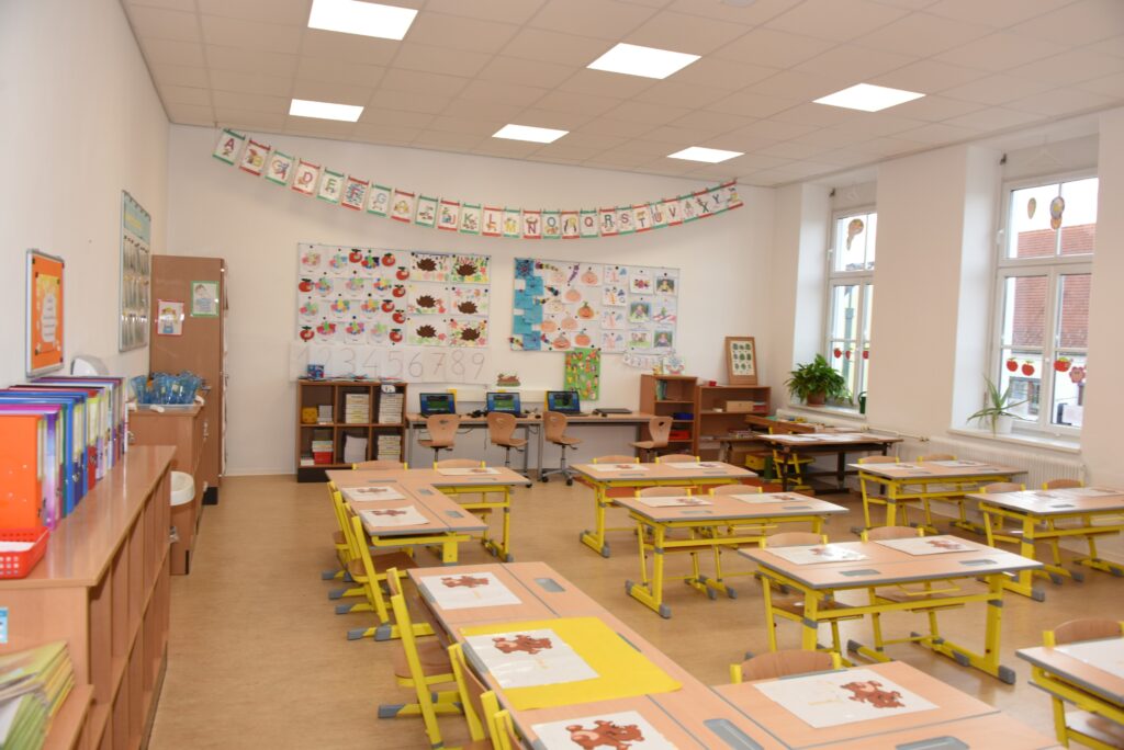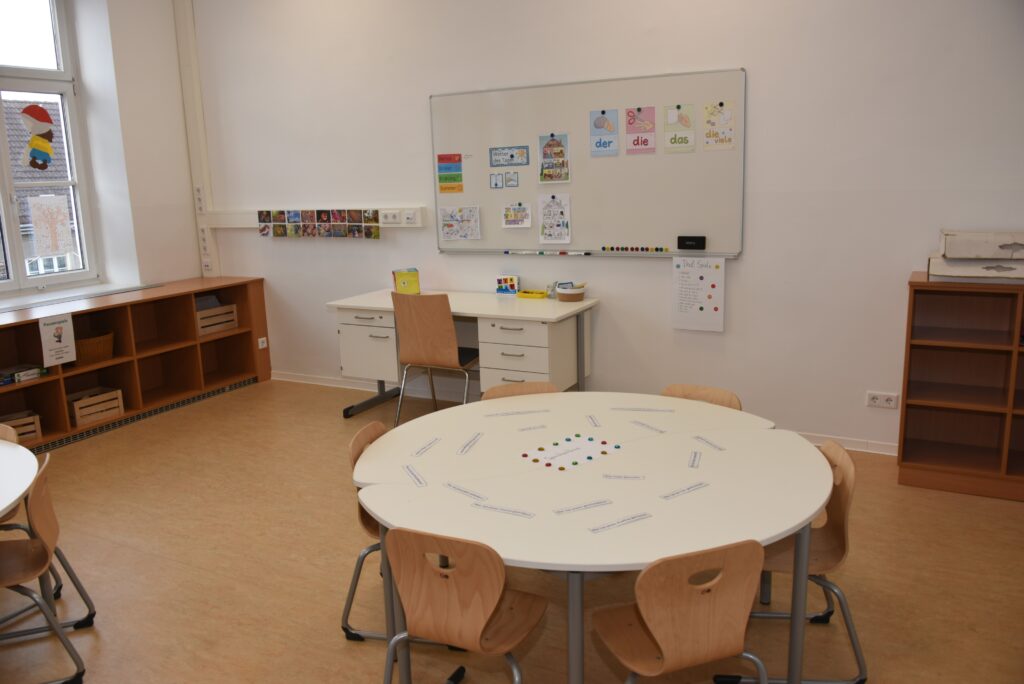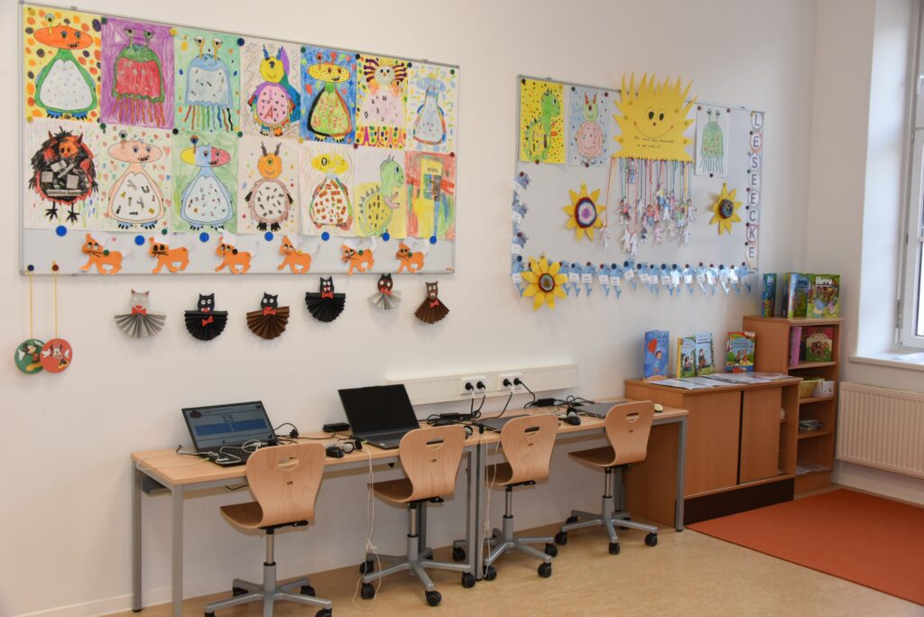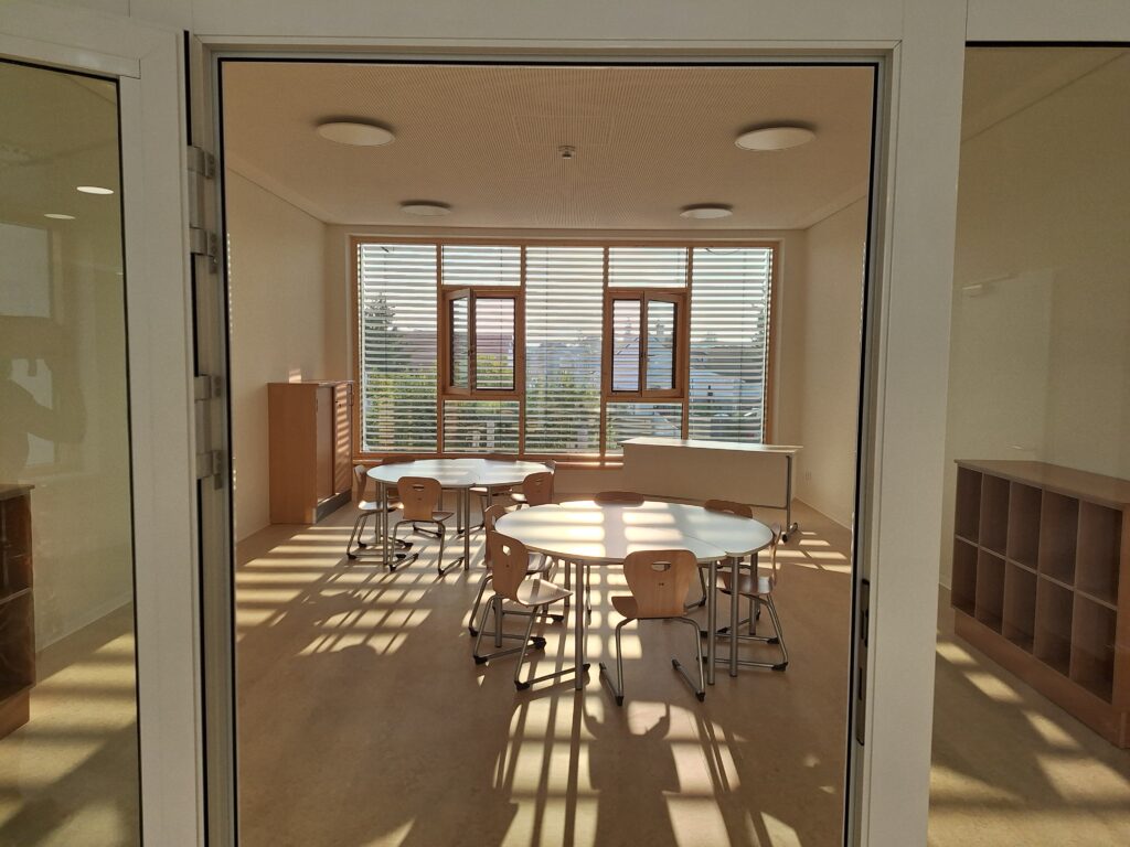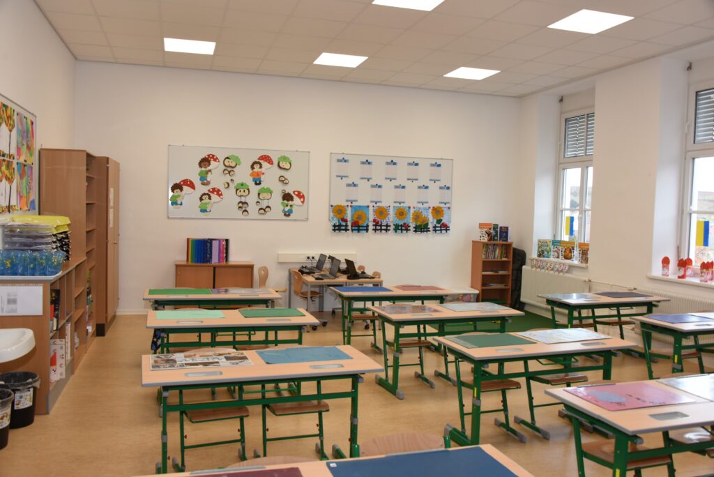 Alle 8 Klassenräume im Altbau bekamen neue Böden, eine neue Decke mit moderner Beleuchtung, einen neuen Wandanstrich und in jedem Geschoss wurde ein moderner Gruppenraum errichtet.